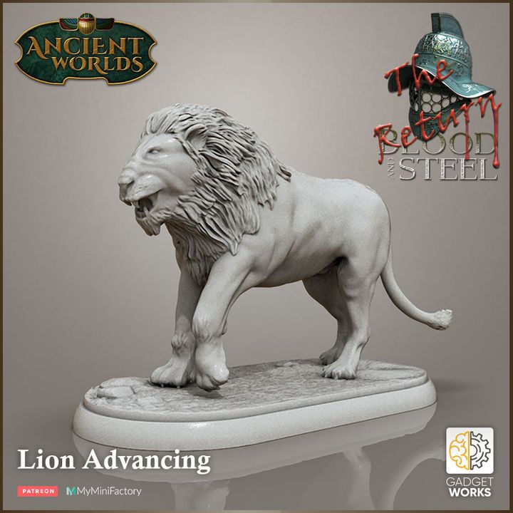 3 Lions - African Lions with bases and victim by Gadgetworks Miniatures
