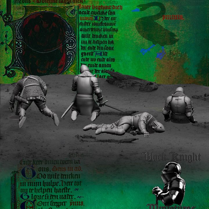 4 knight casualties of early 15th century knights by Black Knight Miniatures.