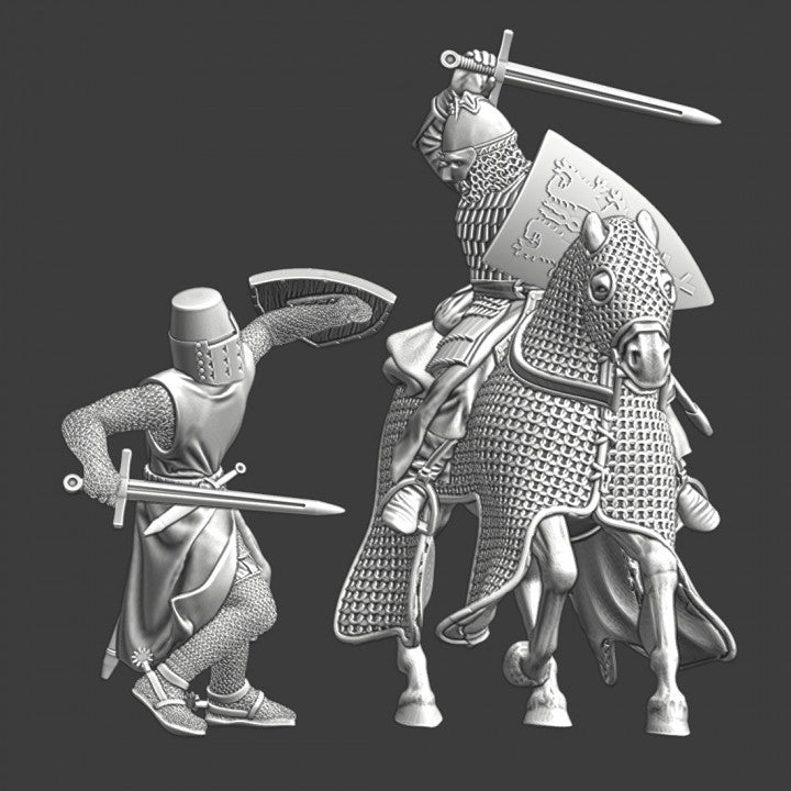 1 mounted Figure and 1 foot figure 28mm (1/56 )Medieval knights.