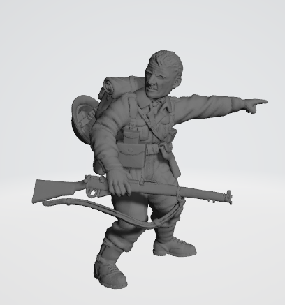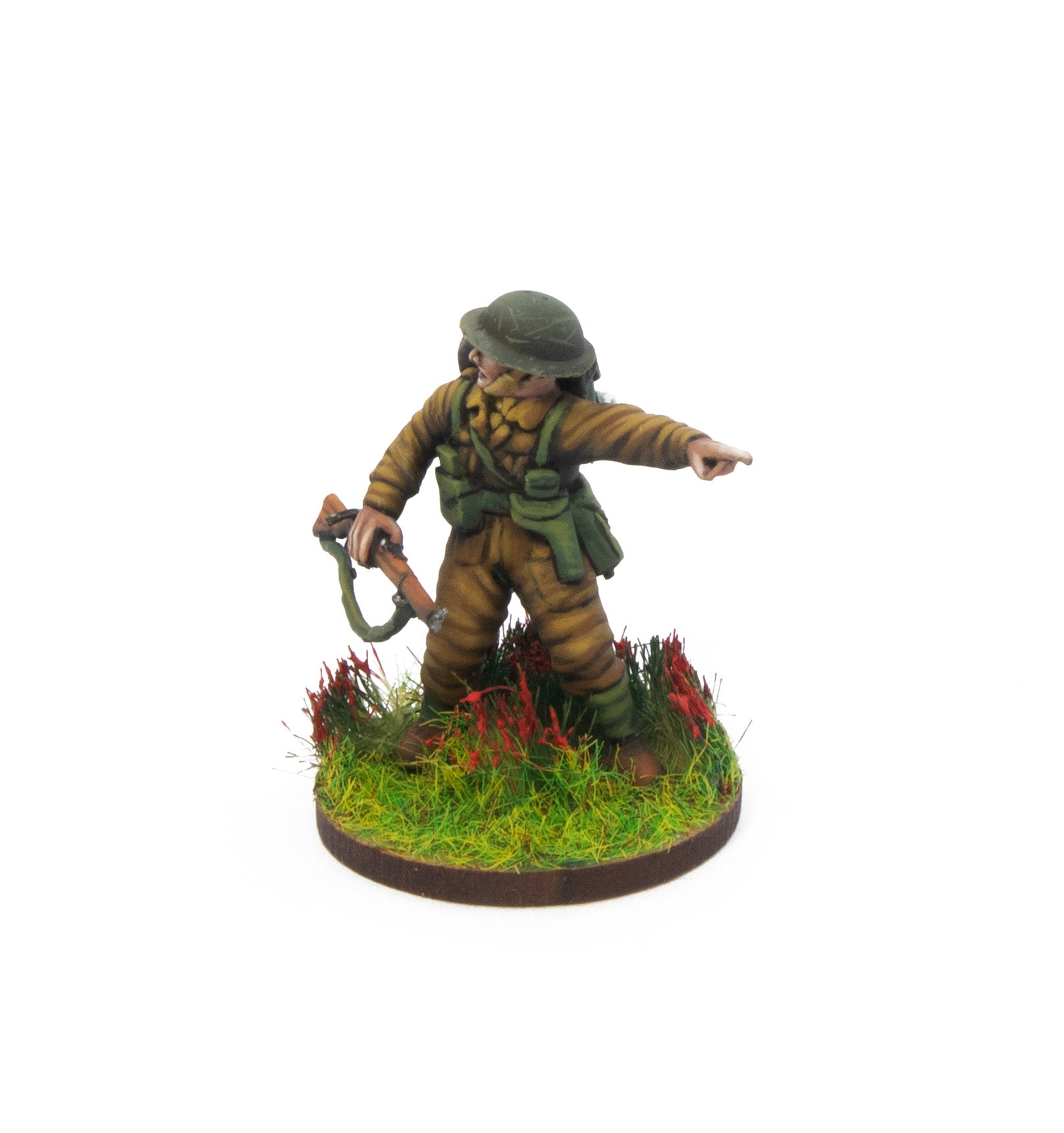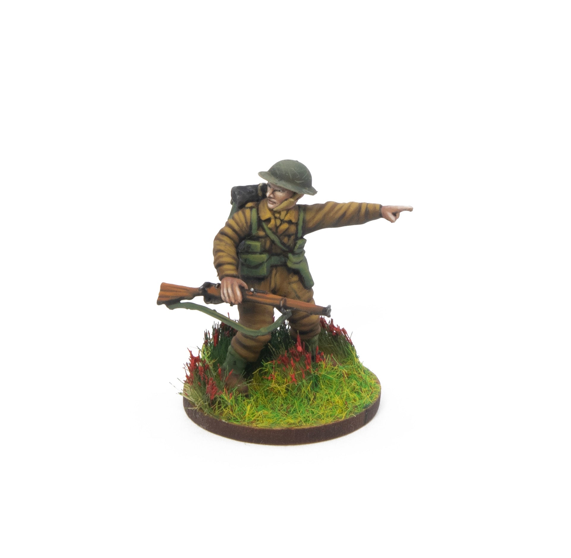 Charles Upham in Battledress Uniform Officer Webbing with Pistol Holster and carrying an SMLE Rifle in hands. Depicted based on his time during the Battle of Greece. This figure can also serve as an officer in the 2nd BEF in France (as shown painted).