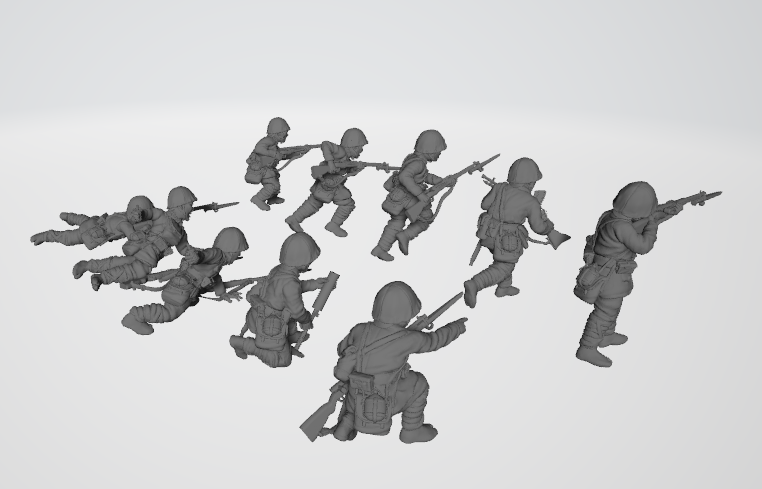 11 figures (10 infantry with cloth helmets and Jika Tabi). Bonus Figure-Happy Fellow Sculpt. 28mm Scale. Product is made in high quality Studio Historia Blended resin, flexible and detailed. Product is not intended for children