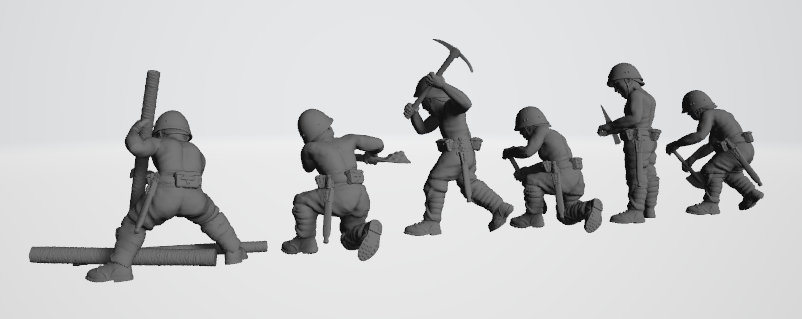 6 figures in various construction poses. 28mm Scale. Product is made in high quality Studio Historia Blended resin, flexible and detailed. Product is not intended for children