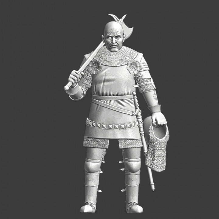 1 figure 28mm (1/56 )Medieval knight. Product is made in high quality Studio Historia Blended resin, flexible and detailed. Product is not intended for children.