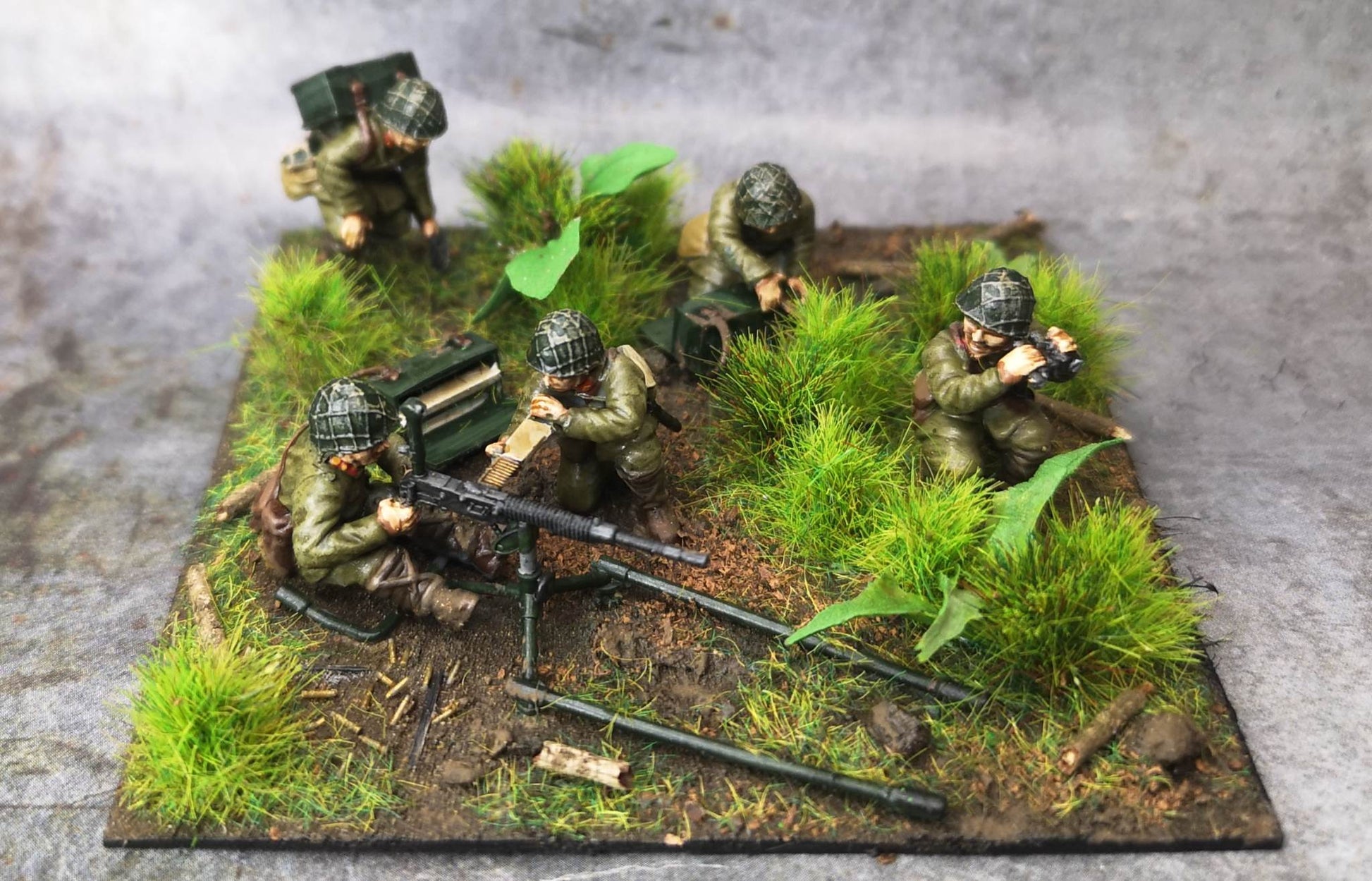 5 models, MG. NCO Pistol; Gunner 1-2 Pistol (Operating the Gun); 3-4 Ammo Bearers; M98 Uniform & Type 92 Helmet. 28mm Scale. Product is made in high quality Studio Historia Blended resin, flexible and detailed. Product is not intended for children