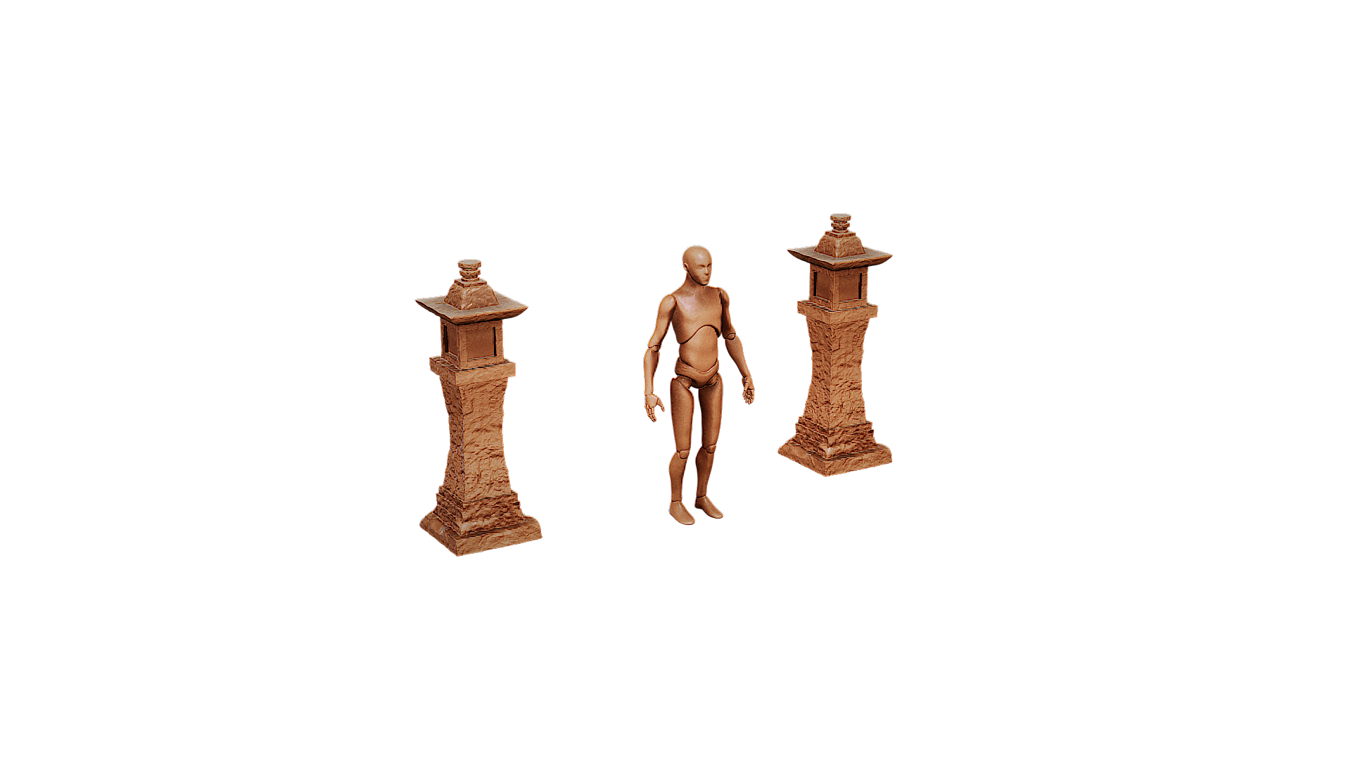 2 Japanese Garden Lanterns by Key Capas. 28mm Scale Figure shown for scale and not included.