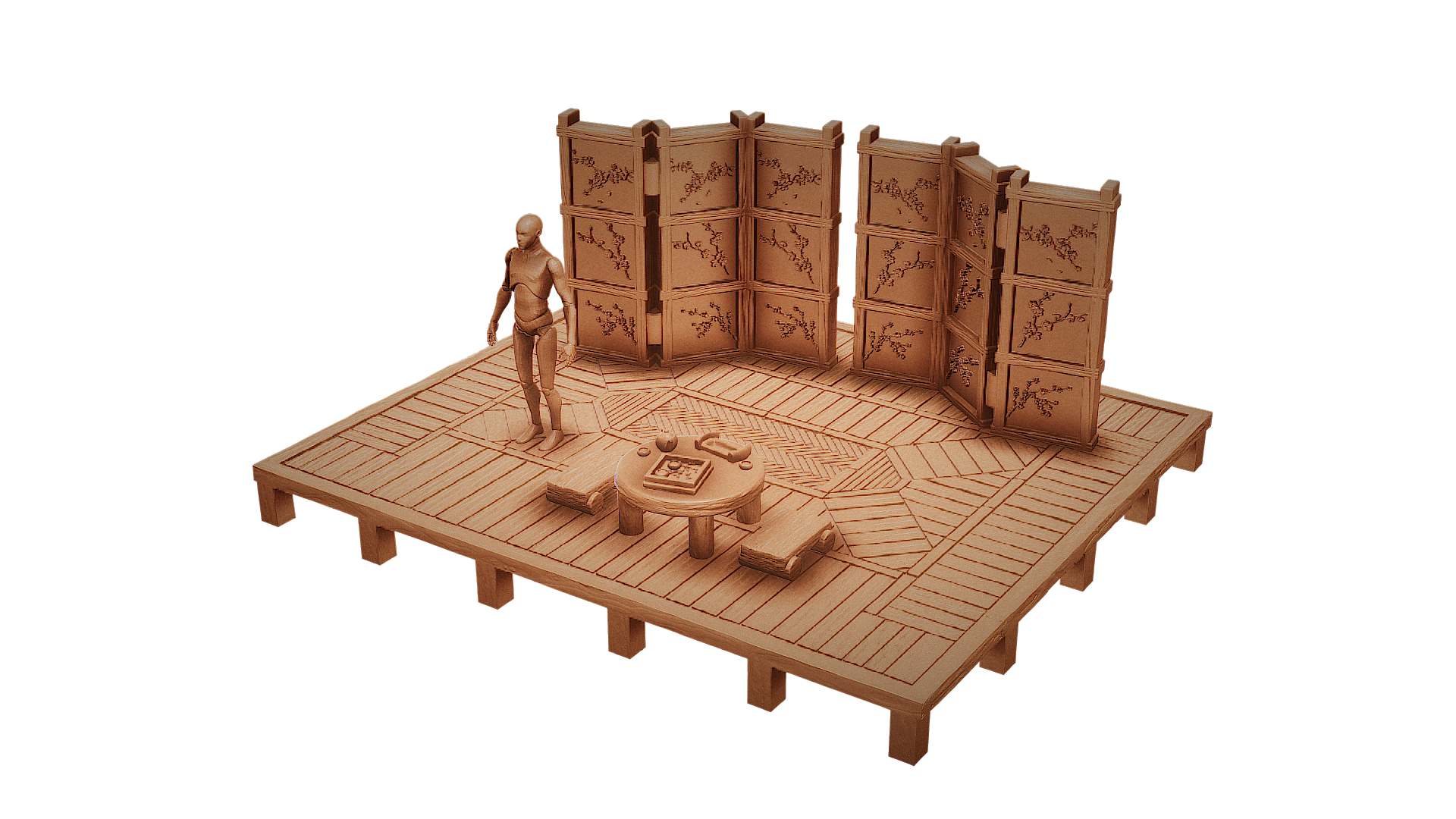 Japanese Raised Performers Platform by Key Capas. 28mm Scale Figure shown for scale and not included.