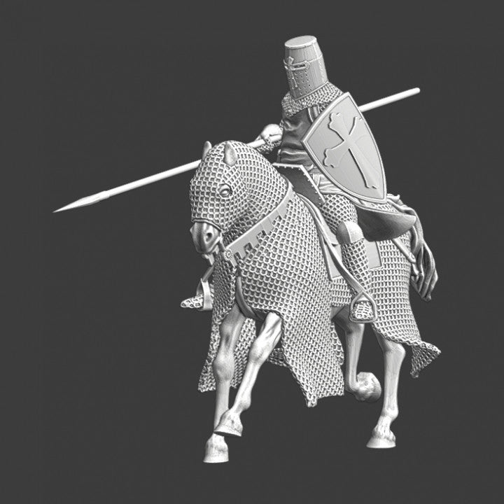 Medieval crusader knight with couched lance