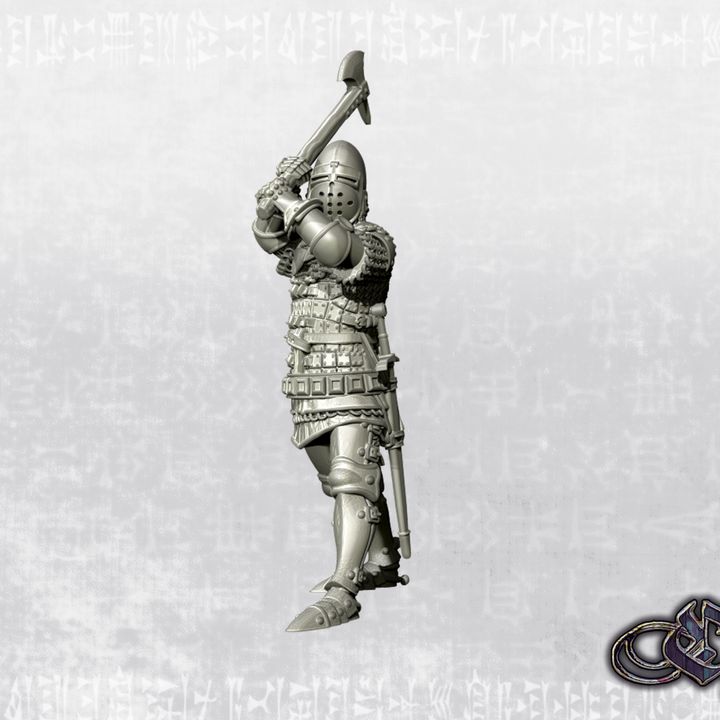 "Knight on foot slashing with axe from above - 14th century" by Ezipion miniatures.