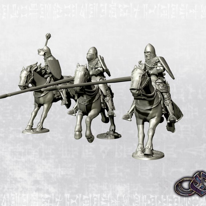 "Knights charging on warhorse'' by Ezipion miniatures.