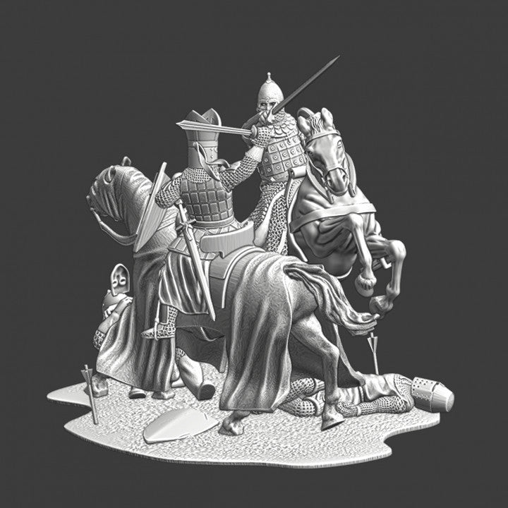 2 mounted Figures 2foot figures 28mm (1/56 )Medieval knights.