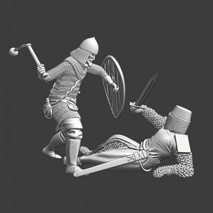 Medieval battle vignette - Teutonic Knight and Baltic Warrior