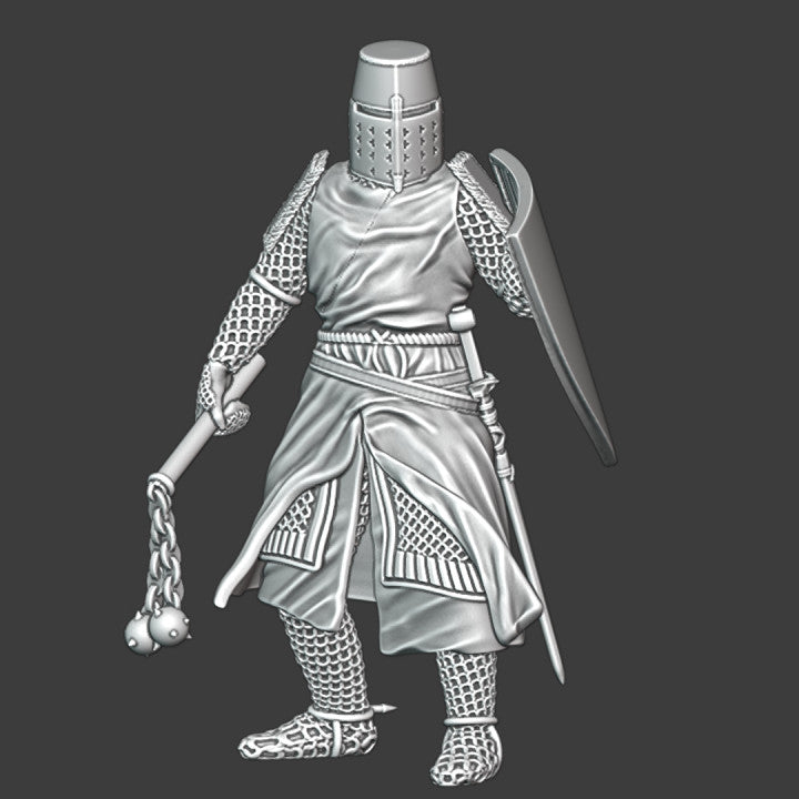 Medieval crusader knight with flail