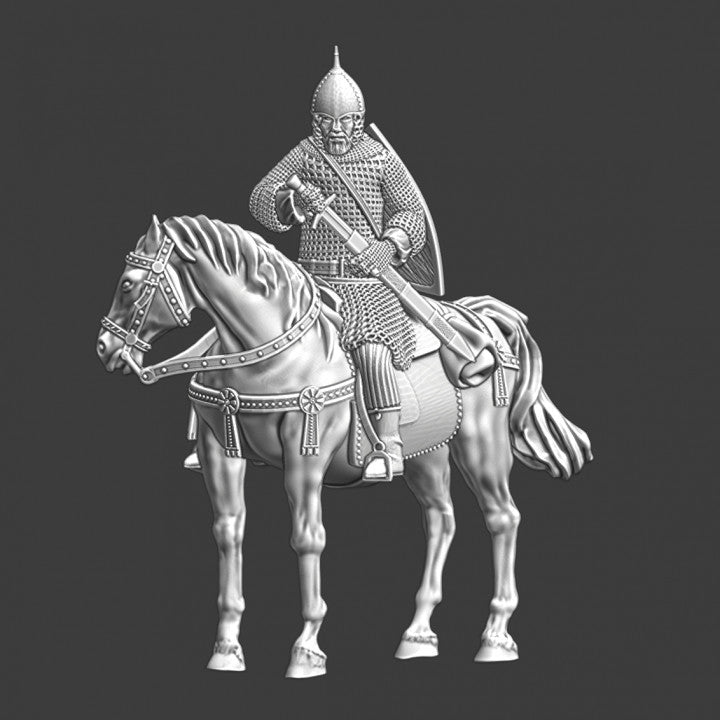 Medieval Kievan Rus (Ukrainian) mounted drawing his sword