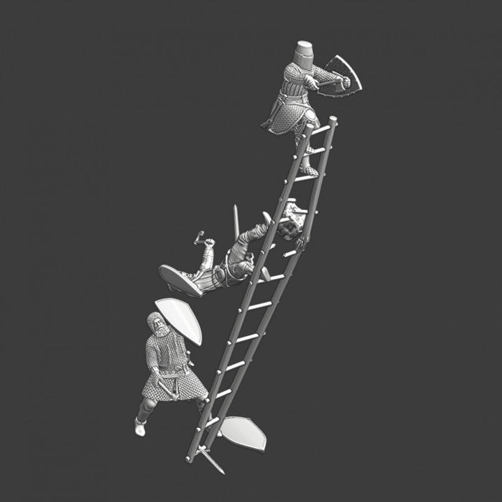 3 foot figures and 1 ladder 28mm (1/56 )Medieval knights.