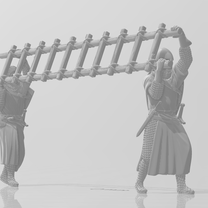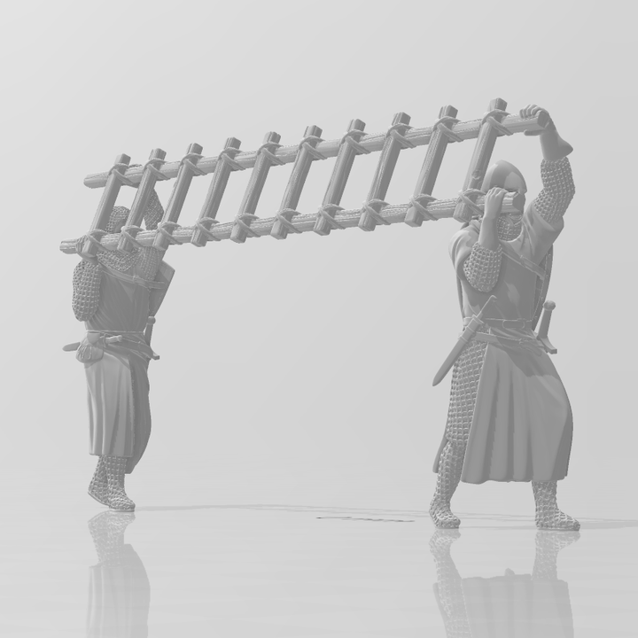 2 figures and one ladder 28mm (1/56 )Medieval soldiers