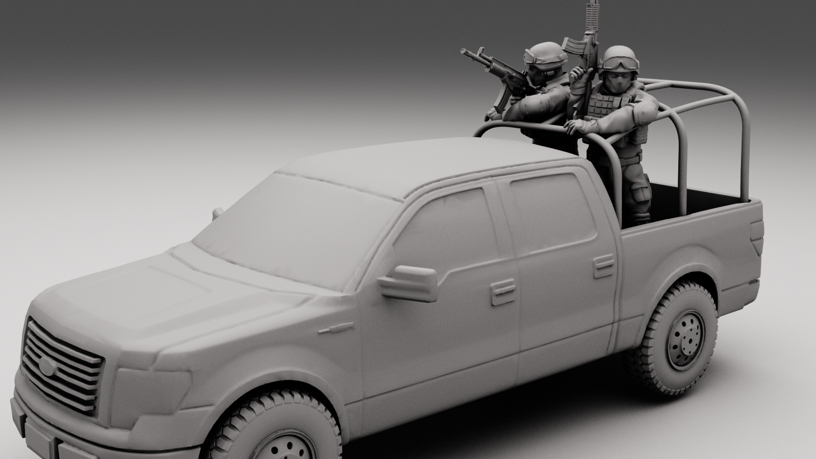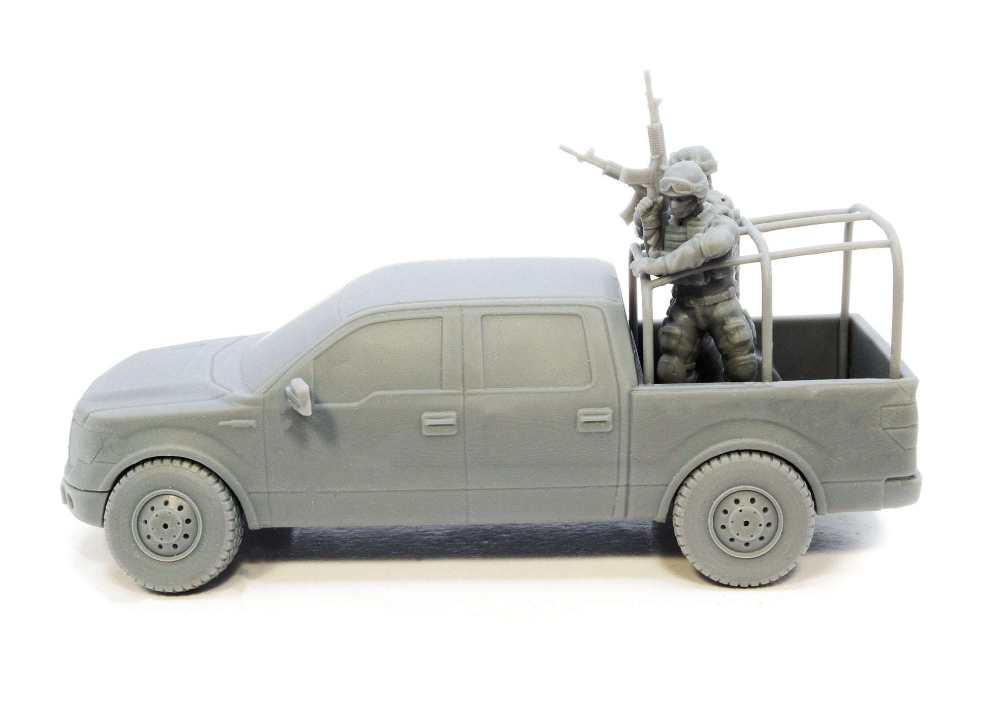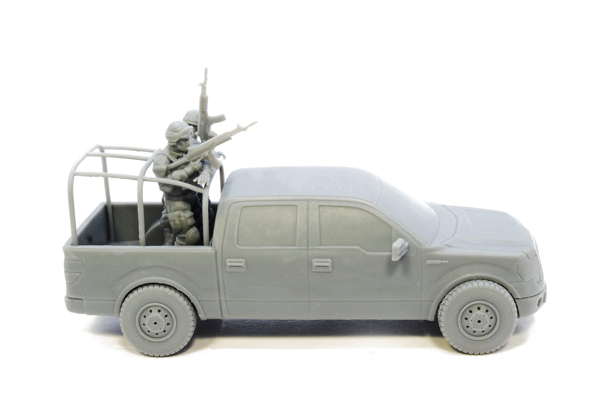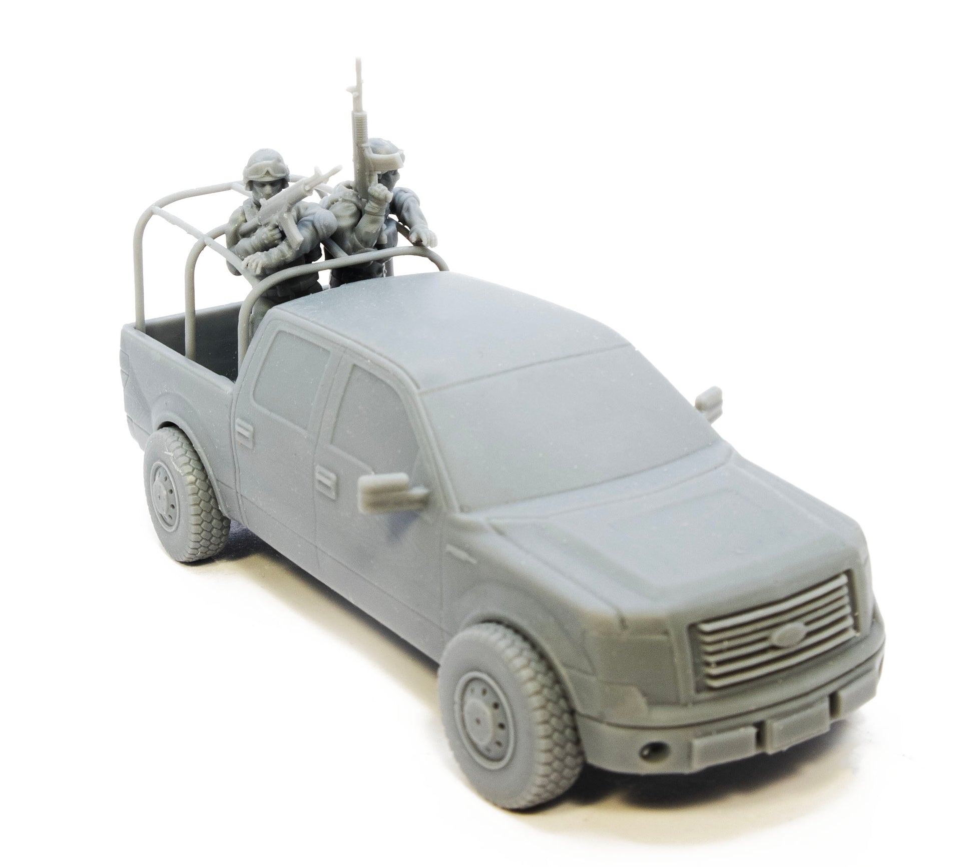 Truck with 2 Passengers. 28mm (1/56) scale. Made of high quality resin. A second version of this truck is available with a machine gunner here.