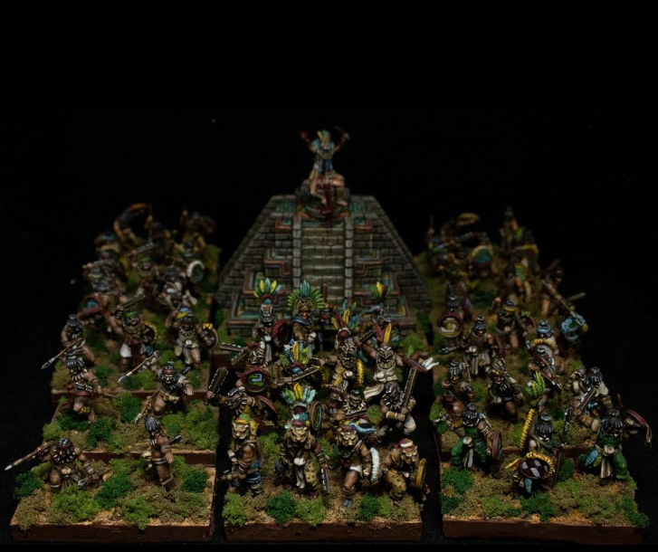 Includes one of each of the figure packs, pyramid and sacrifice, and ball court. Not included are the the remaining buildings and chiampa. 28mm (1/56) Scale. Product is made in high quality Studio Historia Blended resin, flexible and detailed. Product is not intended for children.