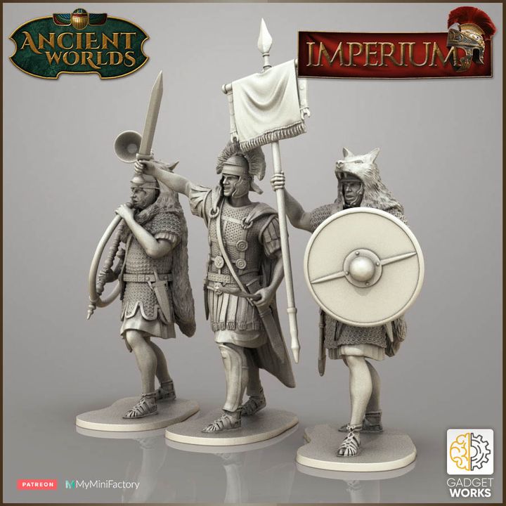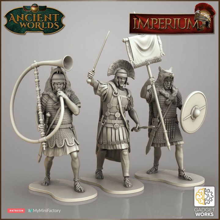 Roman Legion Command. Centurion, Cornu, Standard by Gadgetworks Miniatures.
