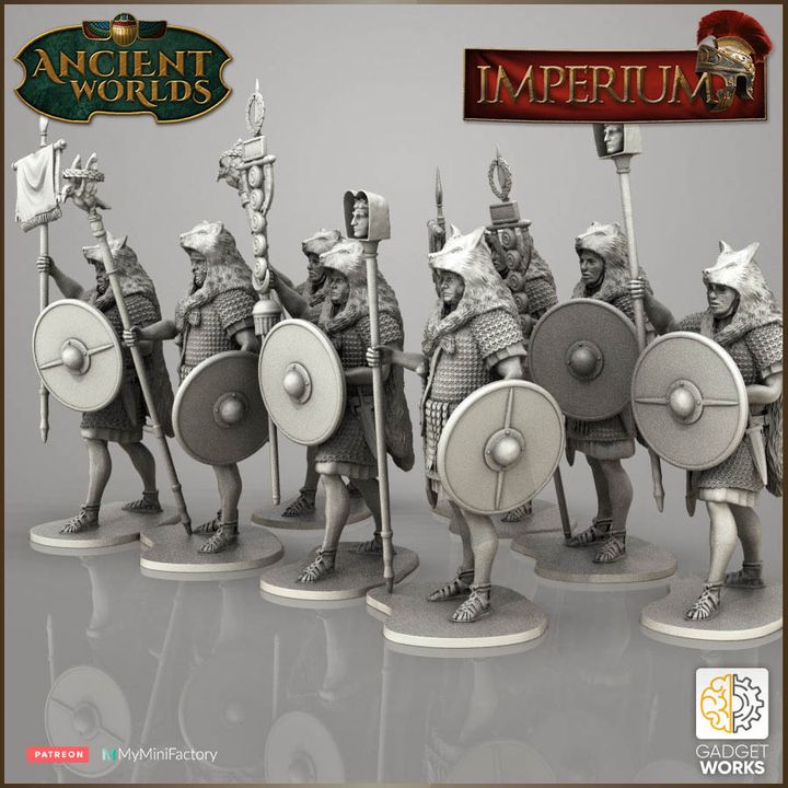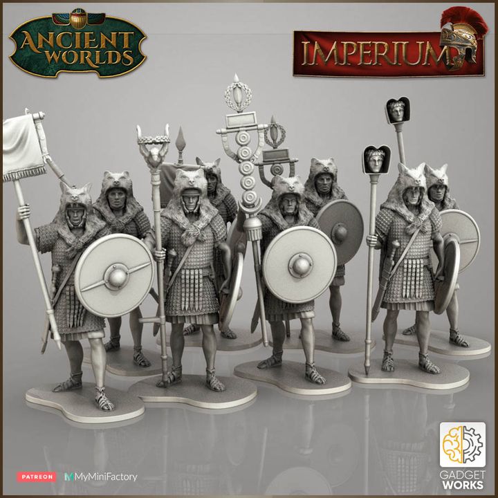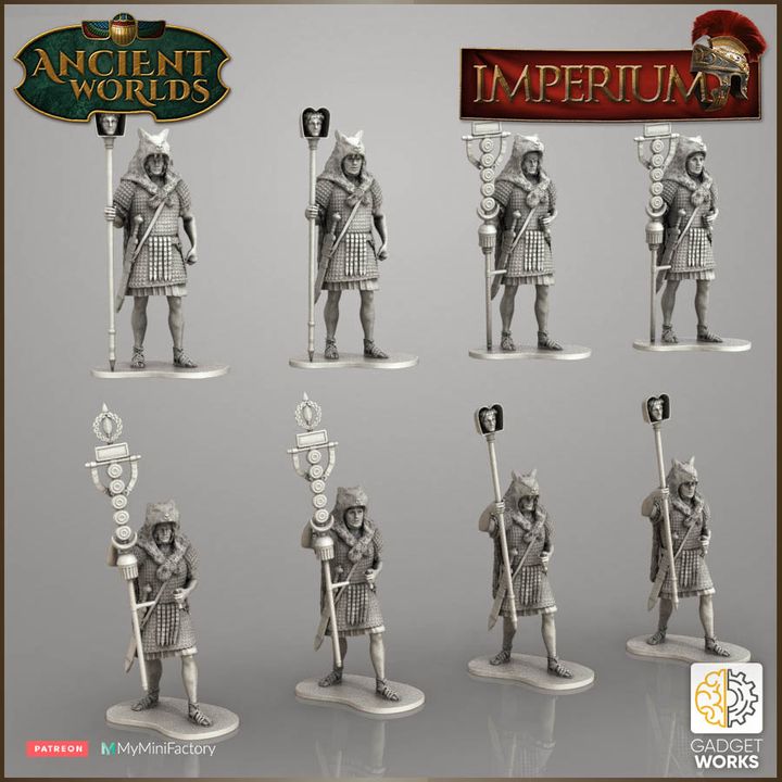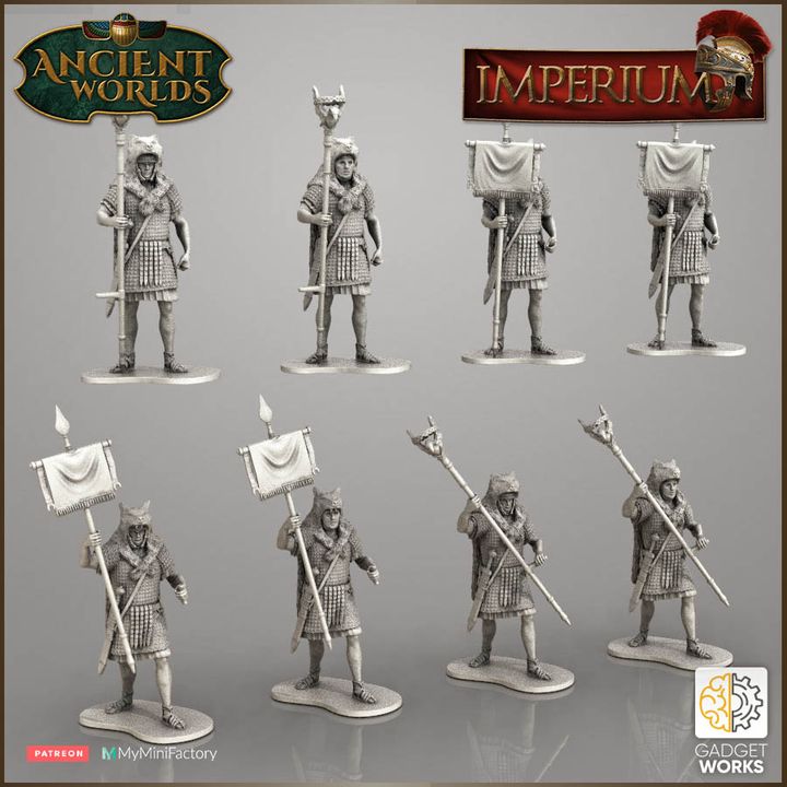 8 Roman Standard Bearers by Gadgetworks Miniatures.