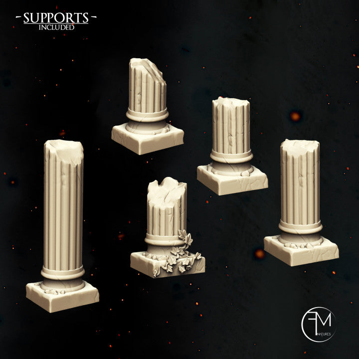 5 columns 28mm in different sizes . 28mm Scale. Product is made in high quality Studio Historia Blended resin, flexible and detailed. Product is not intended for children.