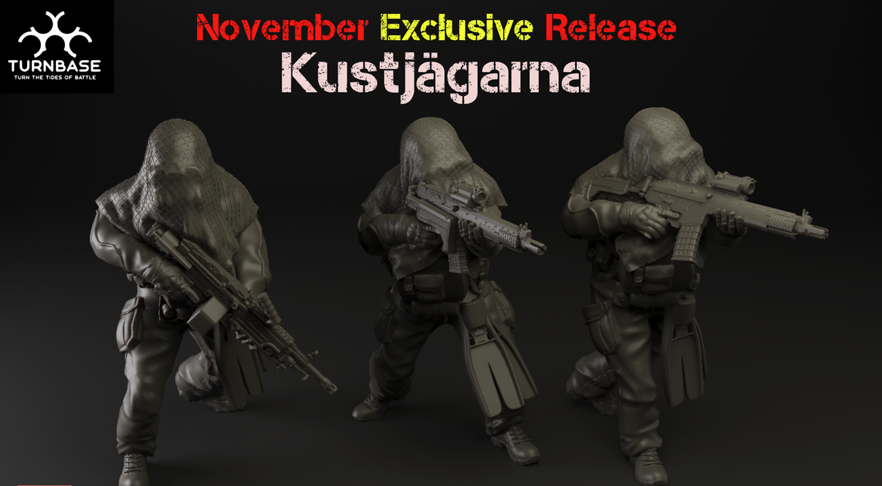 3 Kustjagarna Figures. 28mm (1/56) scale. Made of high quality resin.