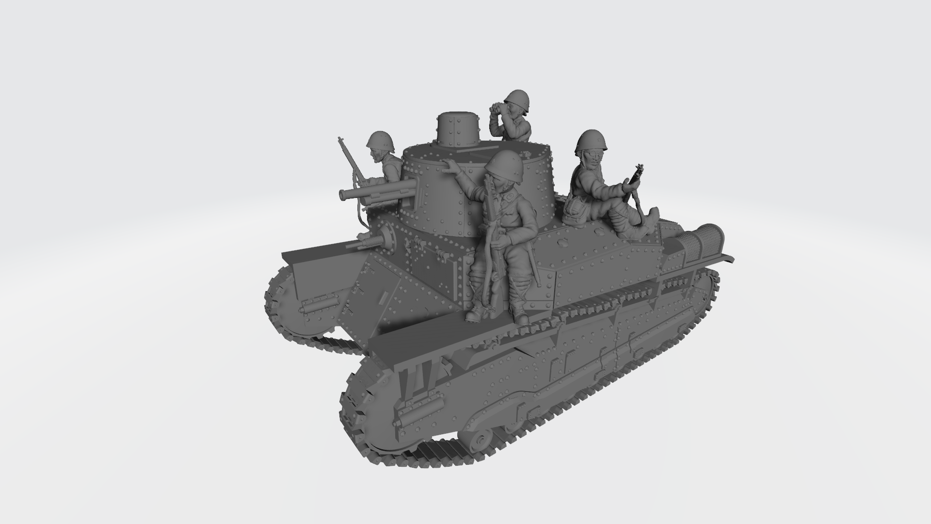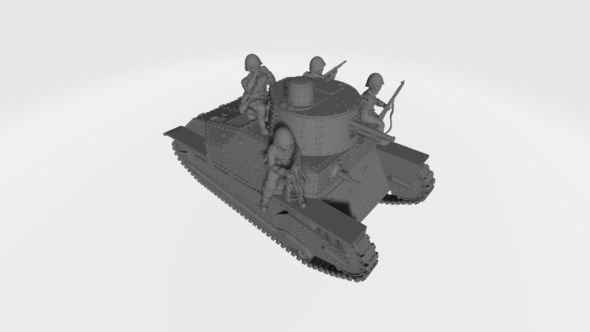 4 figures designed to be mounted on the back of the I-Go tank. 28mm Scale. Product is made in high quality Studio Historia Blended resin, flexible and detailed. Product is not intended for children. Tank is not included, but only shown for reference.