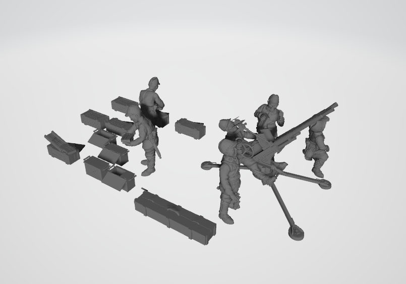 6 crew, Gun, and ammo transit cases. 28mm Scale. Product is made in high quality Studio Historia Blended resin, flexible and detailed. Product is not intended for children